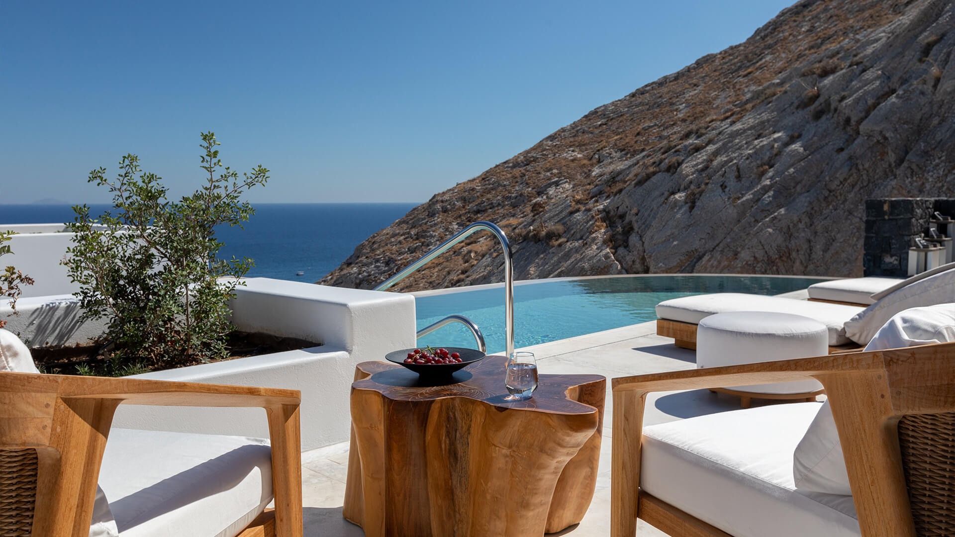 Experience the freedom to unwind at your own pace in spacious villa. The living room and fully-equipped kitchen exude an inviting atmosphere, while the private terrace with a shimmering pool opens up to panoramic sea views.